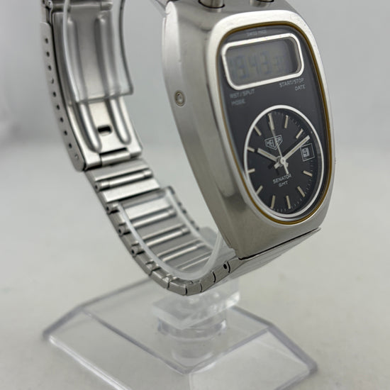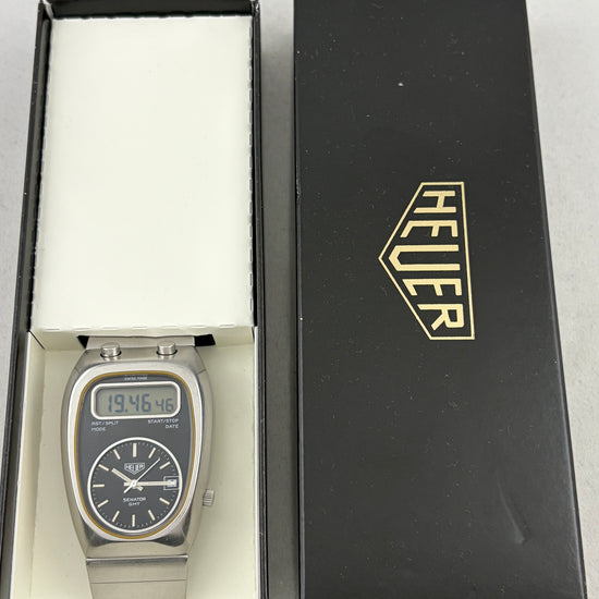 Sjældent retro herrearmbåndsur Heuer Chronosplit R.100.723-3 LCD Chronograph med gummirem